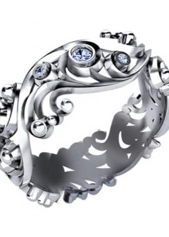 Incredibly gentle and elegant on the ladies' finger, openwork rings look.They can have completely different and intricate patterns, spectacular interweaving and ornaments. Such models will be appropriate for ordinary socks, as well as for festive and wedding events.