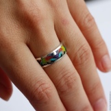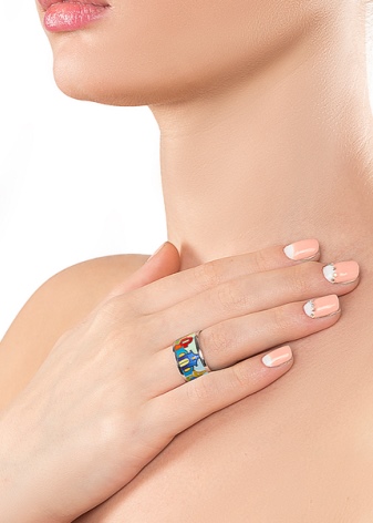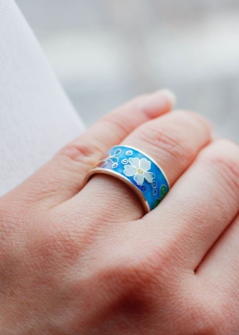 Enamel can be applied to the ring in two ways. The “cold” method allows the coating to dry even at low temperatures. More complicated is the hot method.Each product requires firing up to 100 times, while a temperature of 700 to 900 degrees is needed. Jewelry made using this method is much more expensive.