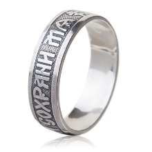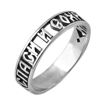 You can buy an ordinary platinum ring, and then order an inscription on the inside from a jeweler. The ring "Save and save", although it refers to jewelry, but should not be artsy or bright. The inscription on the ring is turned to God. Such jewelry will be a great gift for a loved one.