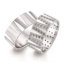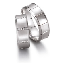 Newlyweds very often choose platinum wedding rings for their wedding. Their cost is higher than that of gold models, since platinum is a rarer metal. Many people like the practicality and style of these exquisite rings. Engraved options are characterized by durability.
