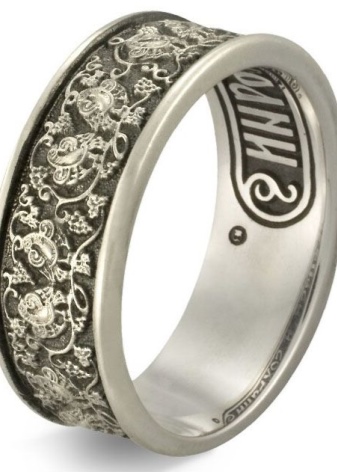 Many women prefer rings decorated with religious inscriptions. Such jewelry is purchased for everyday wear. Platinum is an ideal choice due to its high quality and reliability.