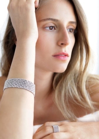 Today, white metal is in trend, and this trend includes not only jewelry made of platinum, but also made of white gold or silver. Against their background, stones look profitable and interesting. Models with precious stones are often chosen for a wedding.