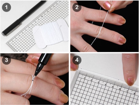 This method will give more accurate results if the paper ring is held along the entire length of the finger. Do not forget about the problematic middle phalanx.