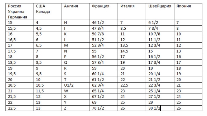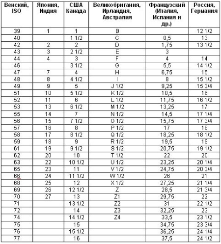 In order not to resort to calculations, it is most reliable to use a table. This is a special dimensional grid where the main size scales are entered. To understand it is not difficult. The main thing is to determine the size of the ring in accordance with the usual system.