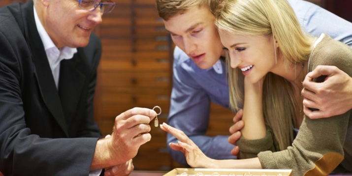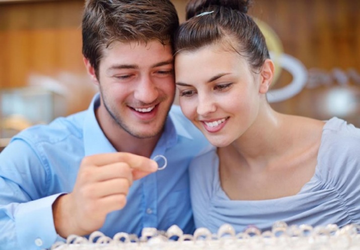 The most questions when choosing a jewelry arise for guys who want to give their lover a ring for engagement. If you are not sure which ring will appeal to a girl, then it is better to opt for a product with a standard design - a ring of medium thickness with a protruding precious stone.