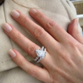 An engagement ring can be decorated not with one but with several stones, while the central one is always larger, and the rest are smaller. Before buying, you should check the stones for fastening so that they do not fall out, as this will ruin the appearance.