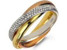 This jewelry is made of several types of metal. Often, craftsmen combine yellow, white and red gold in one piece of jewelry, using interesting shapes of details. These three colors are the embodiment of love, friendship and fidelity. If you like to mix different styles in clothes, then this option will be a great solution.