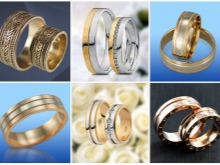 Many newlyweds prefer gold jewelry. The classic choice is jewelry of 500, 583, 585 and 750 samples. This figure indicates the percentage of gold in the product. It is located on the inside of the rings. The most expensive rings have a sample of 958, and the lowest - 375.