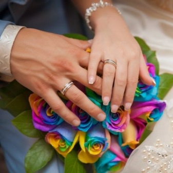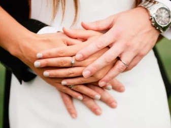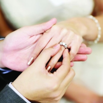 Usually the bride and groom go to choose this important attribute together, but the purchase is made by a man. Jewelry may be identical for newlyweds, or may differ in design. Each pair independently decides which option suits her best.