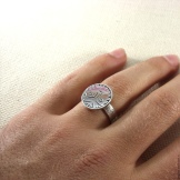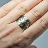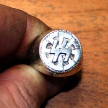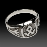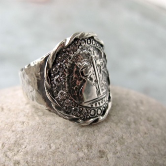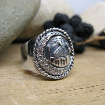 With a relief image of Christian shrines, guardian angels or saints. A prayer is engraved on a wide rim. Despite the jewelry beauty, you should not wear a guard ring as a simple decoration.