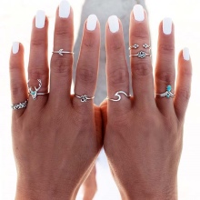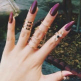 Fans of phalanx jewelry should buy a ready-made set of midi rings. Wide and thin rims, springs and chains of the same metal and in the same style can be combined independently, following your taste and mood.