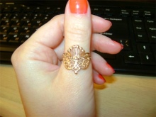The golden engagement ring enhances the mutual understanding and love of the spouses and stimulates the energy of self-realization and success.