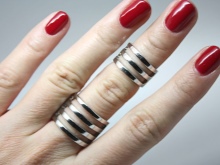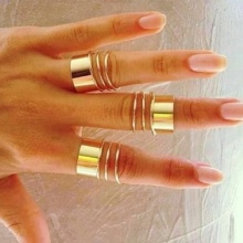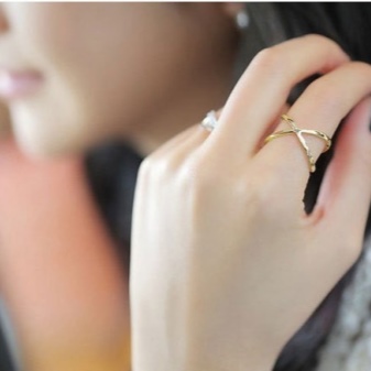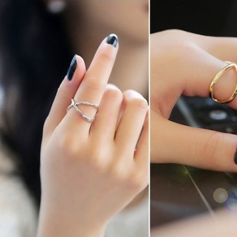 Flat strips of metal, narrow or wide, tightly wrapping around one of the phalanges of the finger. They have an undoubted advantage - they do not need to be selected in size. The open form allows you to put this jewelry on almost any finger, which makes it possible to combine several rims on different phalanges of all five fingers.
