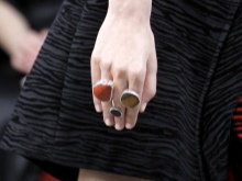 In the trend, accessories are not just with large, but with huge stones that effectively emphasize the grace of a female hand. A massive ring with a bright stone surrounded by phalanx rings looks very elegant. Several rings of different shapes and colors on one hand emphasize the originality of the image. And (attention!) The hit of the season - two or three rings with different stones on one finger.