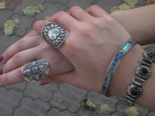 Graceful rings with stones of yellow, terracotta, cream colors on the person’s right (acting) hand indicate his decency and reliability. On the left (inactive) - about excessive suspicion and suspiciousness. Fanciful, extravagant jewelry on the middle finger betray a narcissistic personality who considers himself “irresistible”.