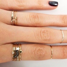 Currently, midi rings have become a real hit. Their assortment is great: gold, silver, made of various alloys, decorated with embossed stamped pattern, decorated with precious, semiprecious stones or rhinestones.