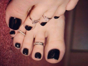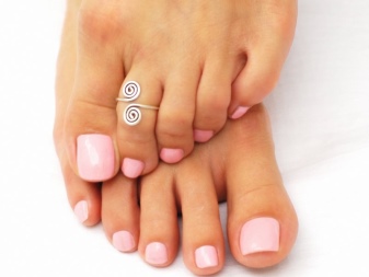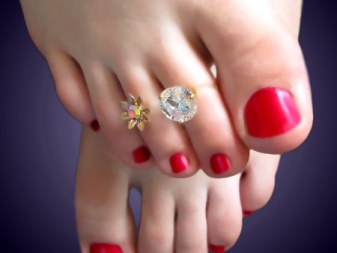 - Silicone rings. On the polymer rim can be a spectacular top with a lining in the form of a pattern of small stones to hide a not so elegant silicone base. In addition to decorative, they perform a hygienic function, protecting the interdigital space from rubbing.