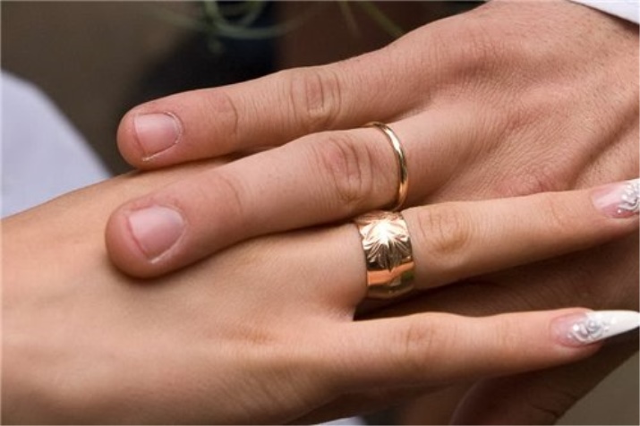 It is put on the ring finger of the right hand and only after the wedding ceremony. Other jewelry from this finger should be removed. The wedding ring is a more powerful talisman of family happiness than an engagement ring.