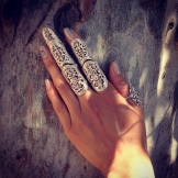 - Fragile thin fingers will be decorated with thin metal lace of openwork rings. Carved patterns can depict floral or any other ornament. In any case, such a ring looks very gentle and beautiful.