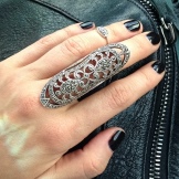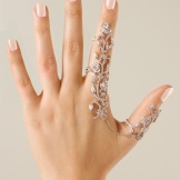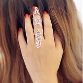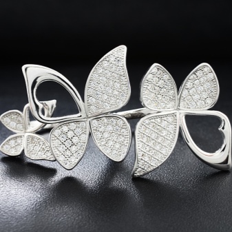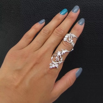 These rings are particularly popular due to their unusually sophisticated design. They have many different variations, for example, openwork, thin cobwebs that gird a finger from the very base to its top. Some models are executed in the form of a branch of a blossoming tree, creeper, vine, twisting around a finger. Other rings are decorated with bizarre ornaments or imitation of real metal armor.