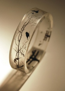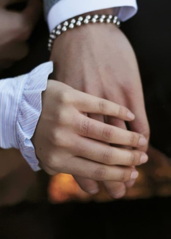 Such original jewelry has an unusual shape. A convex pattern or inscription is located on the inside of the accessory. When a person removes the ring on his finger, an impression remains in the form of a heart, a dove or a romantic inscription. Of course, such a pattern will not last long, but the effect of what is seen will be very strong and memorable.