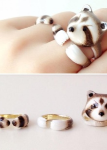 Among other original and unusual rings, jewelry made in the form of a bird's nest, various plants, clothing, hats and shoes, barcodes, vegetables and fruits, wires, knots, ropes, elements of the periodic table, magic balls, human eye, nails can be noted , cartoon characters, dice.