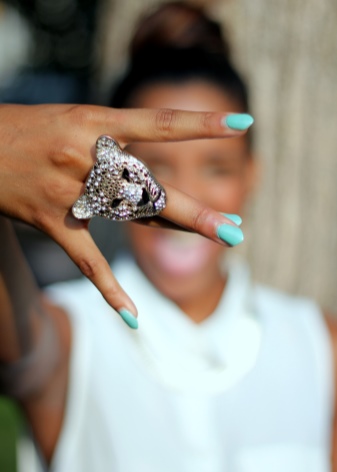 - Rings with stones always attract attention. Especially if they are large crystals of bright, beautiful colors: blue, turquoise, lilac, pink, golden, purple or red.