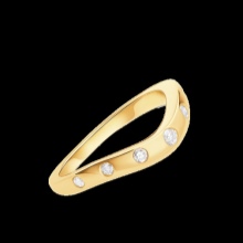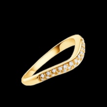 - A variant with a wavy frame framed by diamonds that are not located next to each other, but at a great distance. Seven diamonds are as if recessed into metal, due to which the model looks quite unusual. Materials - platinum and yellow gold.