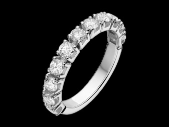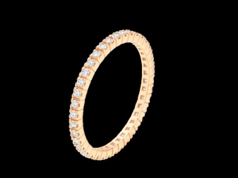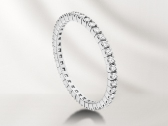 A narrow and flat bezel made of platinum or white gold. It can be decorated with a solitaire diamond in the recess of the rim or with five small stones. The most expensive and chic option is a frame with inlaid small diamonds in a row, as a symbol of eternal love.