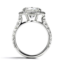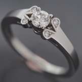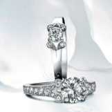 Rather narrow platinum or gold ribbons, in the center of which a stone is fixed on the paws, around small diamonds or fragments. The frame created in a special way creates the effect of a stone “floating” above the frame, which shimmers and shines with bright light.