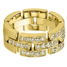 The shape may resemble a chain consisting of many moving links. To create models, various colors of gold and diamonds are used. Price range - from 70 to 322 thousand rubles.