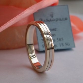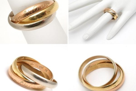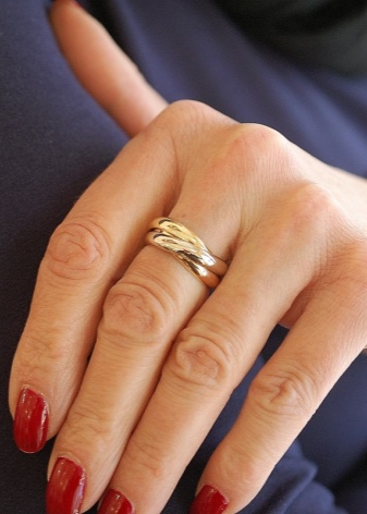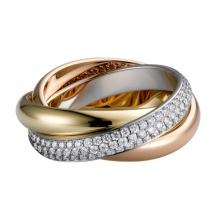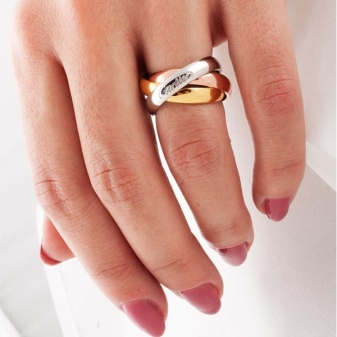 The three parts of the ring are twisted together in a bizarre way and make up one magnificent composition. Each ribbon is created from a specific metal and symbolizes the feelings that underlie a happy marriage. White gold is responsible for eternal devotion, yellow gold is for faithful friendship, pink - for true love. Ribbons can be decorated with diamonds.