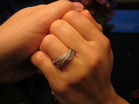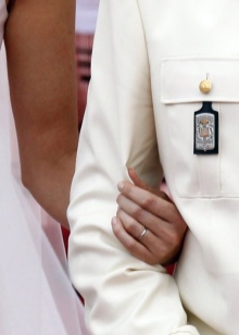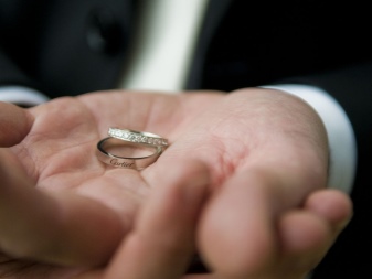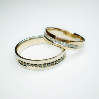 It is distinguished by the presence of only one ribbon coated with precious stones. The weave of the ribbon symbolizes the endless line of love that envelops the young couple. Platinum 950 serves as the basis for creating a neat decoration. The item is additionally decorated mainly with diamonds. Inlay with one or two rows of diamonds will cost from 340 thousand to half a million rubles.