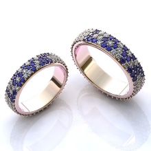 Decorating a ring with a stone, designers can offer several options. There are interesting models with one large mineral, and there are laconic jewelry with loose stones. Original look jewelry with inserts of small stones of the same or similar shade. Such inserts may also contain different subspecies - for example, sapphire and diamond. A luxurious solution will be an unusual pattern of very small elements or diamond chips.