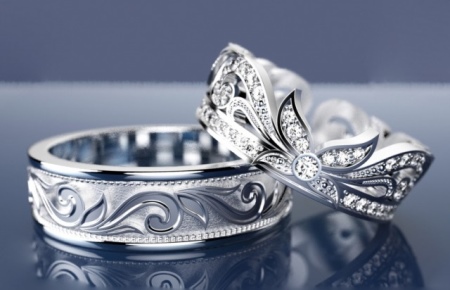 White gold items can be purchased for couples of any age category. They will be a good solution for those who can not afford platinum. A light original ring made of durable material will last for many years and will not lose its appearance. Designers recommend buying “white” rings to girls with the “summer” and “winter” color types. White color goes well with dark or ashen hair and a light shade of the eyes.