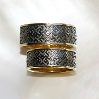 Jewelry in combination with ceramics or gilding looks rather unusual and exquisite. It will be difficult for a young couple choosing rings to pass by such beauty.