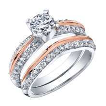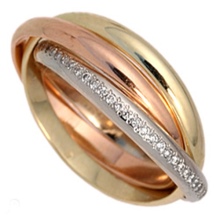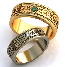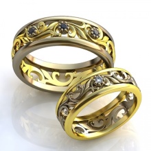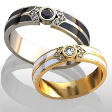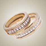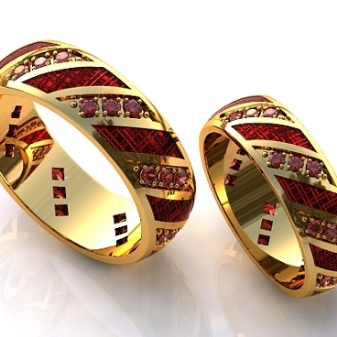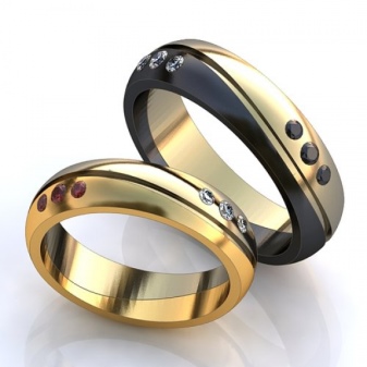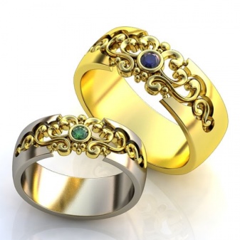 Rings with a combination of pink and white or white and yellow gold are widely represented in sets of a pair of jewelry, where the male ring is combined, without stones, and the female ring has a similar design, but is decorated with various kinds of inserts. There are models in which gold alloys of three different shades are combined, they may look like a combination of three rings.