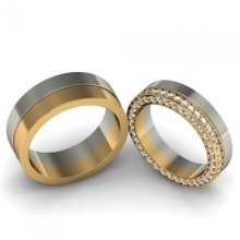 Wedding rings, in which gold of different colors are combined, are becoming more widespread. There are a lot of options for combining different gold alloys in one jewelry. The simplest option is a double ring. This jewelry item looks like a combination of two different jewelry.