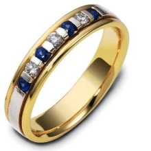 You can find on sale models with color inserts: with blue sapphires, as well as with rubies or emeralds. Often they are combined with diamonds. Sapphires can have many different colors, but blue stones are considered the most suitable for a wedding ring, often they are combined with white gold. For rubies and emeralds, as a rule, yellow or pink gold is chosen.