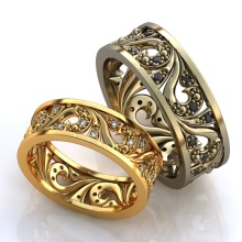 Small gemstones that are recessed into the metal are usually used to decorate these jewelry items so that the surface is as smooth as possible. Wedding rings with large stones are quite rare. Engagement rings are usually made with large inserts; such jewelry can often be purchased complete with a pair of engagement rings.