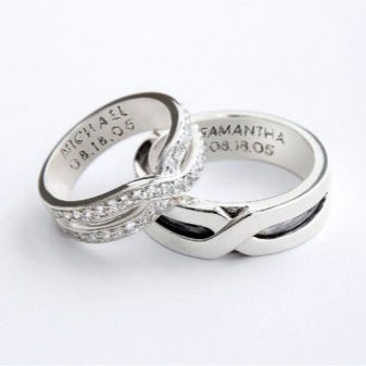 For many couples, the choice of rings falls on products with a similar or identical design. The most popular option is the classic model with an engraving of the wedding date or the names of the spouses.