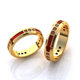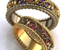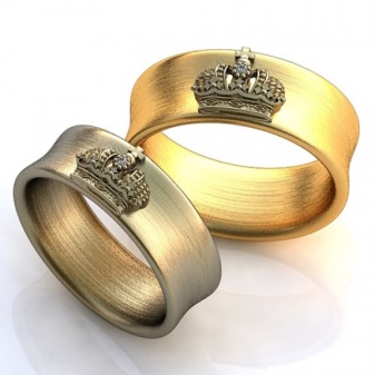 - Material. The classic version of the material for jewelry is gold. It can be traditionally yellow or more original - red and white. A sample applied on the inside of the product will indicate the percentage of gold in the alloy. The highest standard is 958. If future spouses prefer more non-traditional options, then you can consider jewelry made of silver or platinum.