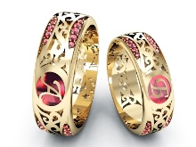 Usually wedding rings are not decorated with ornaments, they differ from other rings in their simplicity. But modern fashion offers interesting and unusual options with a different pattern: with a pigtail, a floral pattern, the image of butterflies, birds, architectural structures.