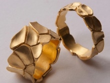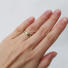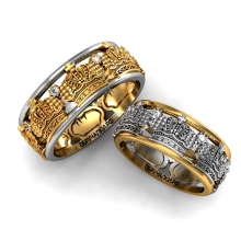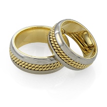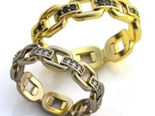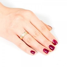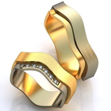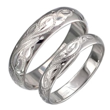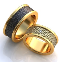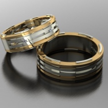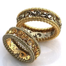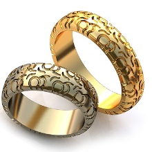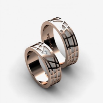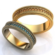 A very popular option in recent years. It is a kind of classic smooth ring, only decorated with small incisions in the form of a specific pattern or ornament. Such corrugated rings are often performed in two-tone.