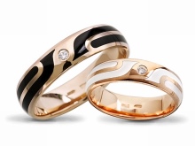 The color scheme of wedding rings is quite concise. Usually yellow or white rings are found. White jewelry can be decorated with a gilded insert or jewelry made of precious stones. Sometimes there are more unusual models, for example, black ones.