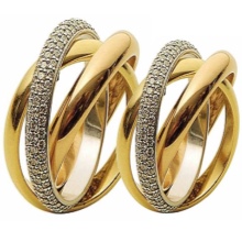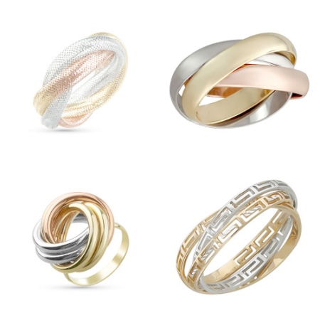 The triple ring looks very unusual and fashionable. Usually it is made of three, intertwined strips of one or more metals. It is decorated with one large or in bulk small stones.