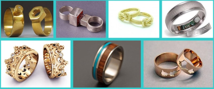 Among the most eccentric jewelry, rings made in an unusual design can be distinguished. For example, nuts, crowns, knotted knots, belts, headphones and other models.
