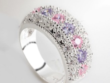A more budgetary model is a ring with artificial stone, cubic zirconia. Although it fades over time, it can be easily replaced. And if desired, insert a crystalline of a different color into the female ring.