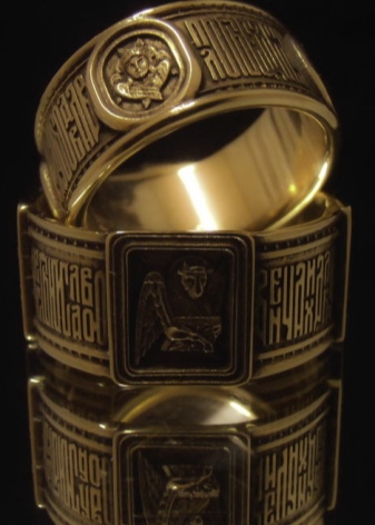 Signet rings are more considered independent jewelry than a symbol of Christianity.Such products, as a rule, are richly decorated, combine several types of metal or precious stones. But they, too, can meet Orthodox themes. Often there are seals with the faces of saints, crosses or angels.