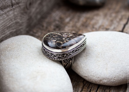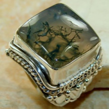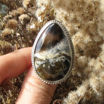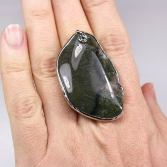 Moss agate looks like moss. There are a huge number of various variations of the rings with this stone. If you look closely at the pattern of such a mineral, you get the impression that through the frozen window you can see the branches of trees. A ring with a mossy pattern protects from damage and the evil eye, gives confidence to its owner, fills it with internal energy and spiritual strength.
